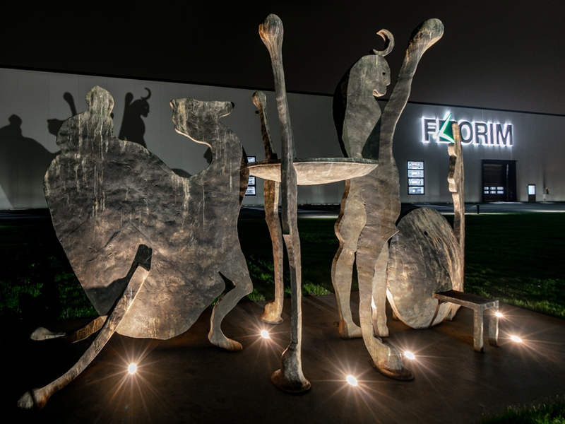 "Percorso amoroso", G. Gallo - opera installata davanti ai nuovi edifici industriali a ridotto impatto ambientale.